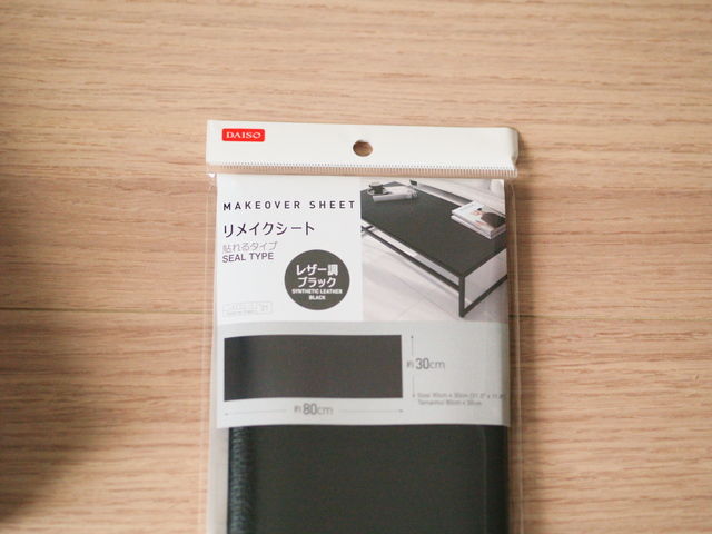 カッティングシートでも良いのですが、案外値段が高く、安く済ませたかったので丁度良かったです。売り場には変な模様の物が多いのですが、唯一黒っぽいレザー調の物があったので買ってきました。もちろん100円(税別)です。
