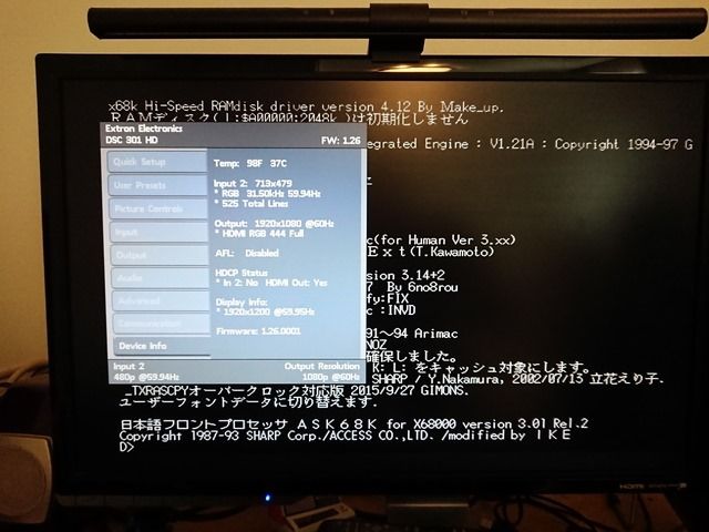 機器の紹介は先日こちらで行いましたが、今回はX68000へ接続してみました。X68000は画面モードがかなり多いのですが、かなりオートで追従してくれます。ただし画面の左右には寄っちゃうので、手動で真ん中にする必要もあります。(少し小さめに映るのでそのままでも遊べると思います。)