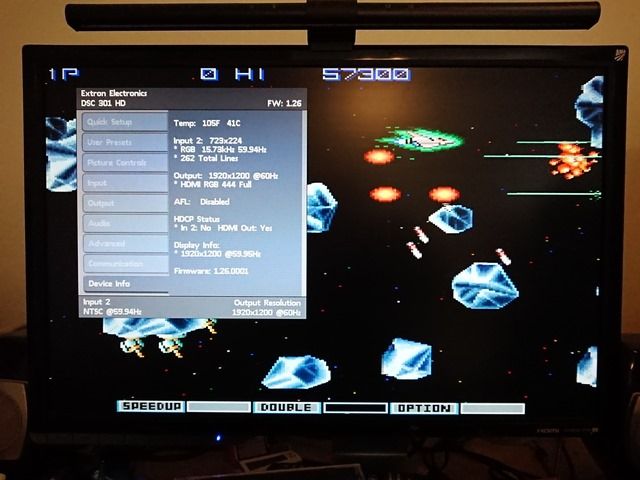 モニターサイズを1980*1200に合わせてやるとかなり良い感じになりました。※4:3にも簡単に変更できます。遅延は自分では気になるようなことはありませんでした。ただしスキャンコンバートしてるので、動きが速いときの変な残像は出ます。特に68の場合は垂直同期も色々有るのを無理に60Hzに変換してることもあり、仕方ないですかね。