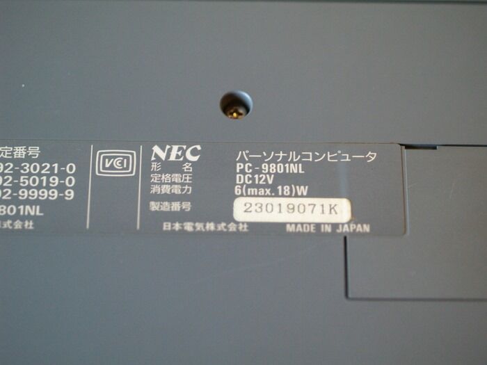 Kamikenさんのお宅にお邪魔させて頂いた時に、無理言って頂いてきたPC-9801NLです。残念ながら不動です。